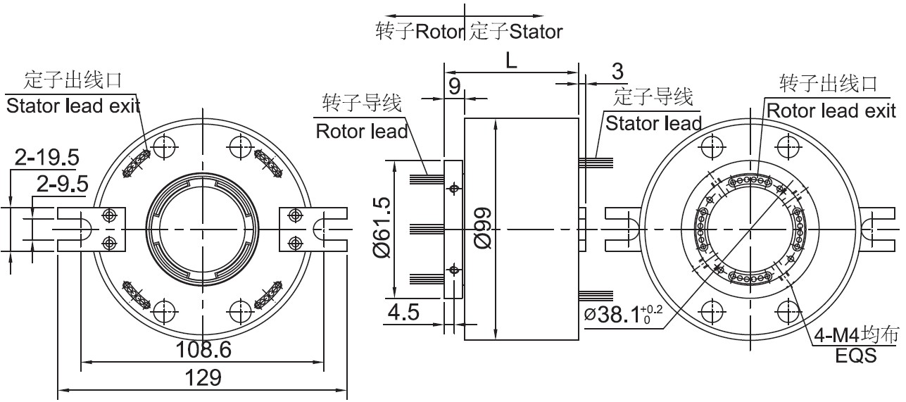 过孔内径38.1mm,外径99mm;